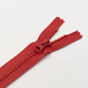 The VISLON® zipper is made of injection molded plastic elements. Rich element color variations are created by formulating the color pigment during the injection process.