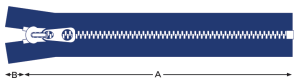 | Two-way separator from the top | From the top end of the slider to the bottom end of the supplementary tape | From the top stop to the cut end