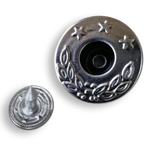 YKK’s brass based SK35 snap is a non-ferrous four-part snap system. The SK35 consists of a cap, socket, stud and post. The cap and socket form one side and the stud and post form the other side of the snap.